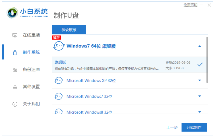 1、先在一臺正常的電腦里插入U盤,并下載安裝小白一鍵重裝系統工具,運行該工具選擇U盤模式,選擇開始制作。