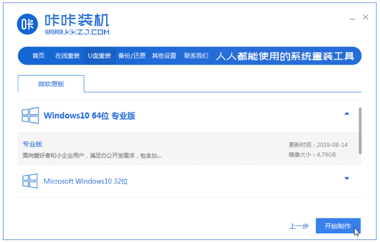 3、選擇我們需要安裝的系統,點擊“開始制作”按鈕。