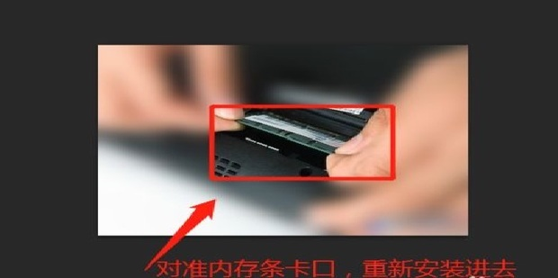 7、最后再將內存條對準卡口,插回去,在接通電源,重新開機試一試。