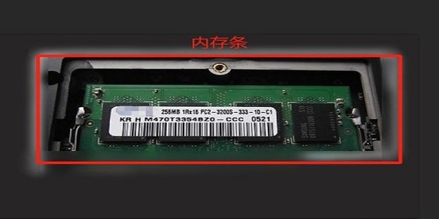 5、此時就可以看到里面的內存條了,用手撥開兩邊的卡扣,就可以將內存條拔下來了,如圖所示。