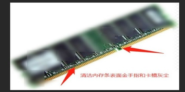 5、用干凈的眼鏡布或者其它紙巾擦拭內存條的金手指表面,并用嘴吹吹內存條插槽上面灰塵,重新安裝內存條。