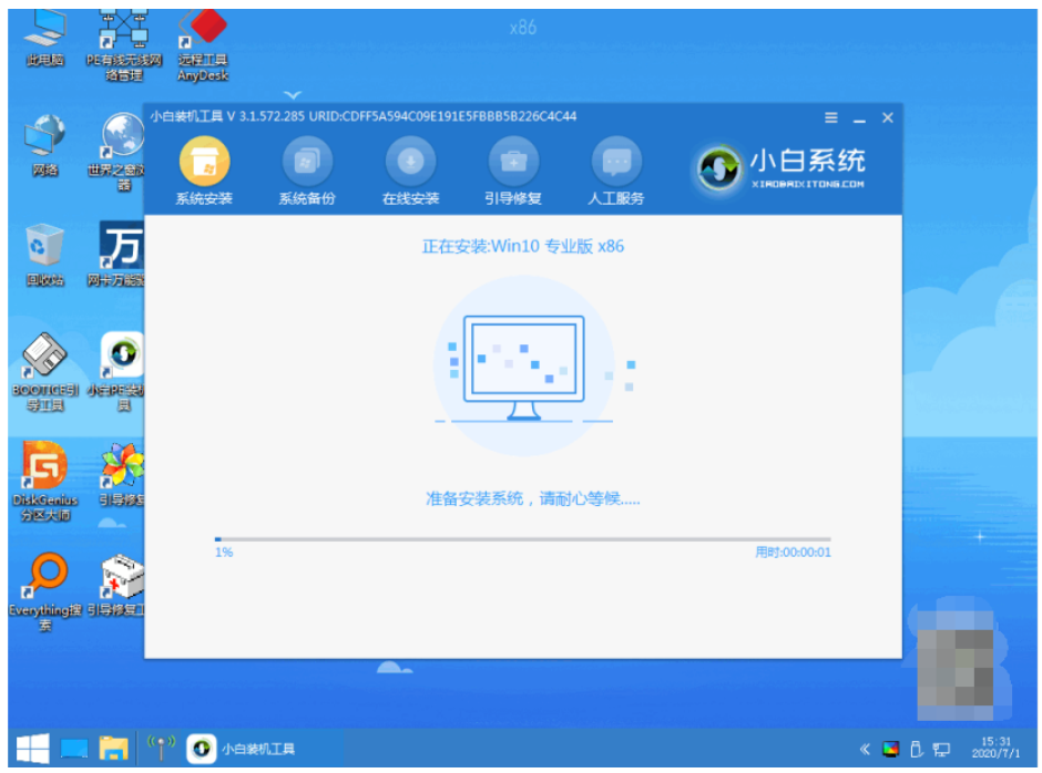 5、在pe系統內,打開小白裝機工具安裝系統到c盤,等待自動安裝完成后重啟電腦。