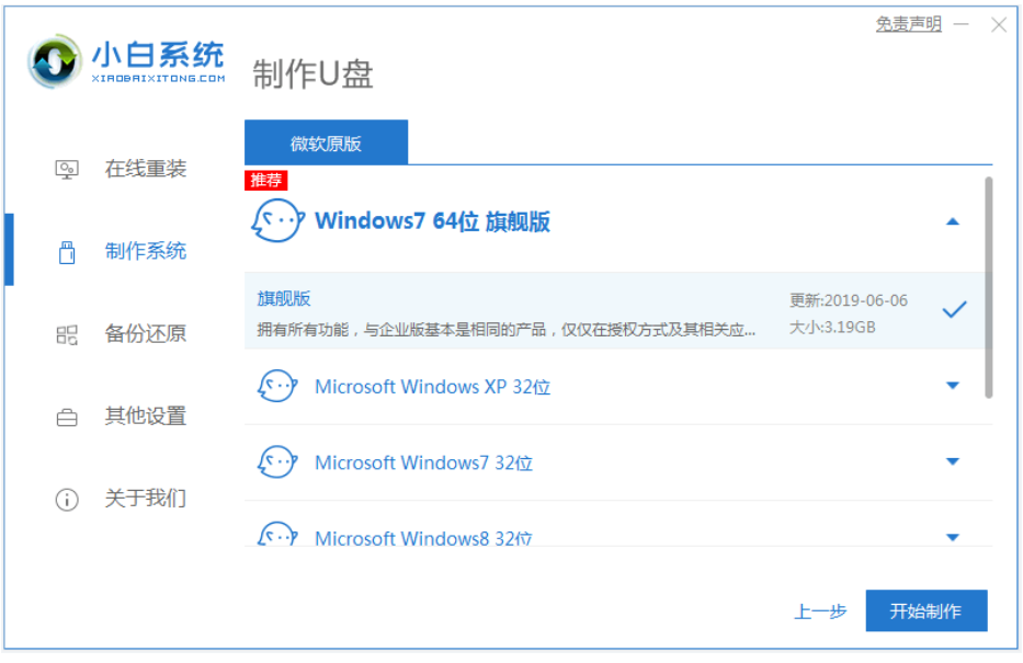2、選擇需要安裝的電腦系統,點擊制作u盤啟動盤。