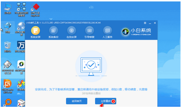 6、耐心等待,系統安裝完成之后點擊立即重啟電腦。