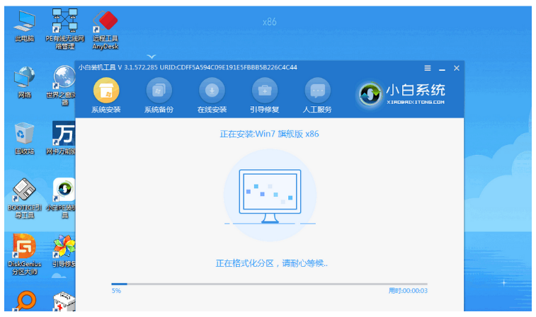 6、電腦進入pe系統之后,小白裝機工具將會此時自動進行系統安裝。