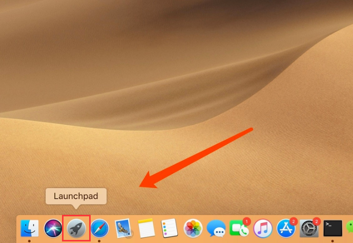 1. 首先,在蘋果電腦桌面底部的“程序塢”中找到“launchpad”設置,并點擊打開。
