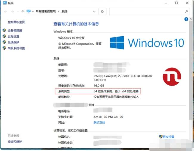 2、然后我們在系統屬性界面中,就可以直接查看到電腦當前系統類型了,如下圖顯示的就是64位的操作系統。