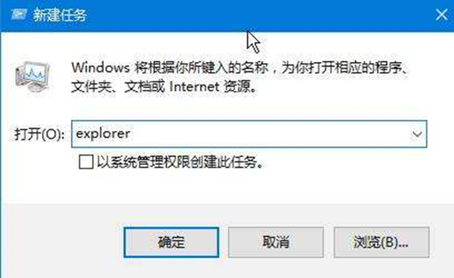 3、點擊【文件】-【運行新任務】,輸入:explorer.exe 點擊確定即可顯示桌面。