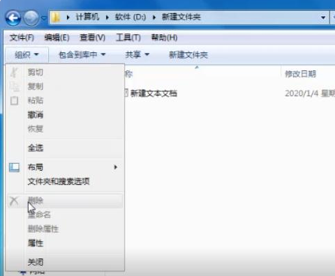 2.然后點擊文件下面的組織,在菜單中選擇文件夾和搜索選項。