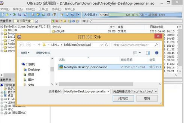 2.借助UltraISO(軟蝶通)軟件來運行移動u盤。選擇適當的ISO格式操作系統文件。