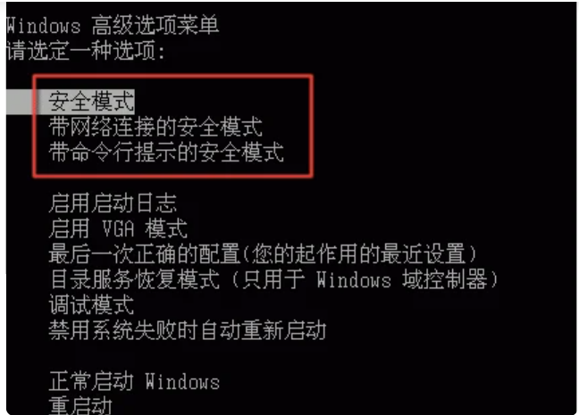 2、在安全模式的菜單中,選擇第一項進入安全模式。