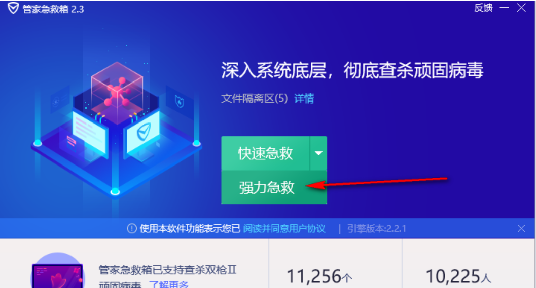 4、進入之后,點擊【快速急救】的下拉按鈕,選擇【強力急救】。