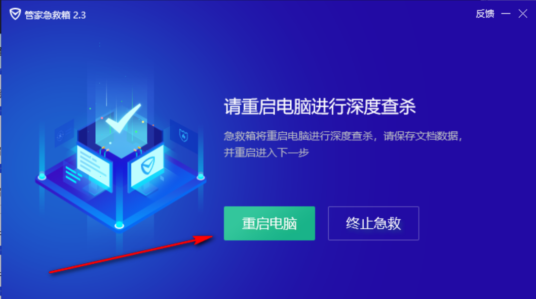 6、隨后即可進入到掃描頁面中,掃描成功后,會提示小伙伴們【重啟電腦】進行深度查殺深度查殺之后就可以解決了。