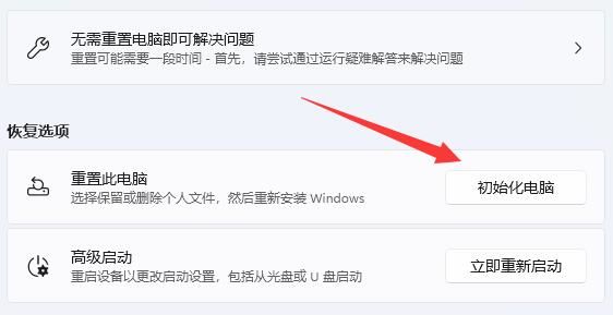 2、然后點擊底部“ 恢復系統設置或計算機 ”。