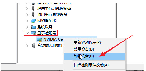 2、接著電腦進入安全模式后,右鍵單擊我的電腦--屬性--設備管理器,找到顯示適配器,右鍵單擊顯卡驅動點擊卸載。然后重啟正常進入系統后,再重新安裝顯卡驅動(通過驅動精靈安裝)。