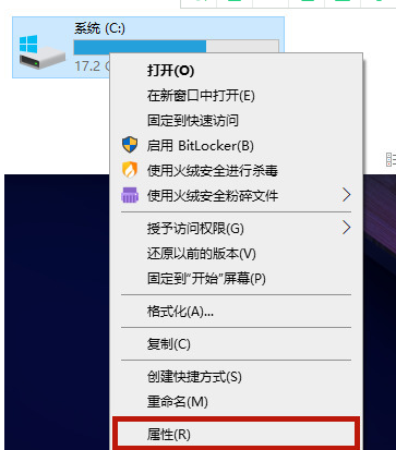 1、鼠標右鍵點擊【c盤】,選擇【屬性】;