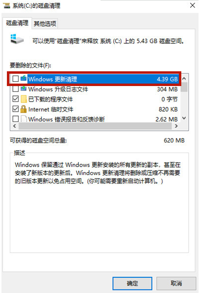 4、在新頁面當中勾選【windows更新清理】或【以前的windows安裝】,之后點擊【確定】就可以了。
