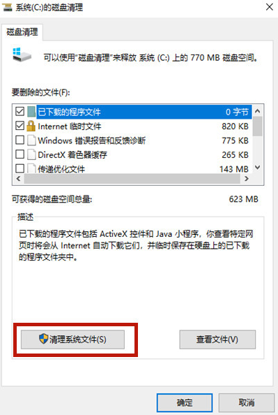 3、進入磁盤清理頁面以后選擇【清理系統文件】,會跳轉到新頁面;