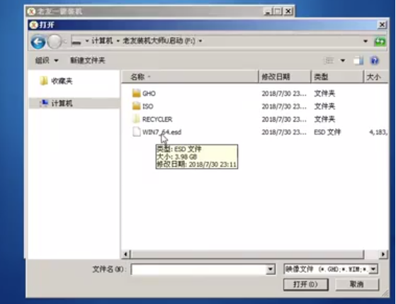 4、 進到PE系統,開啟老友一鍵裝機,點擊瀏覽。
