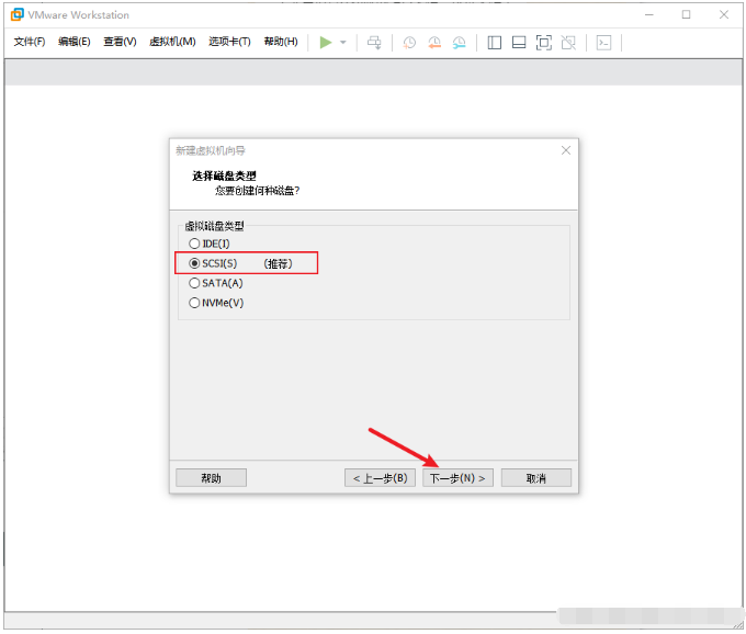 9、默認點擊下一步,再選擇SCSI,繼續下一步。