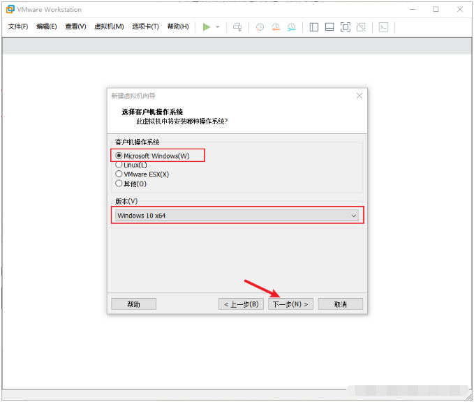 4、選擇微軟的windows,版本根據下載的鏡像文件來決定,點擊下一步。