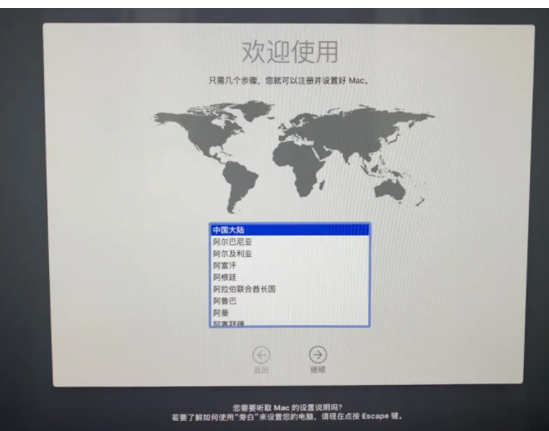 8、等待安裝完成后,我們就可以根據我們的使用習慣來設置蘋果系統啦。(這里建議選擇一個國家的語言,中國)。