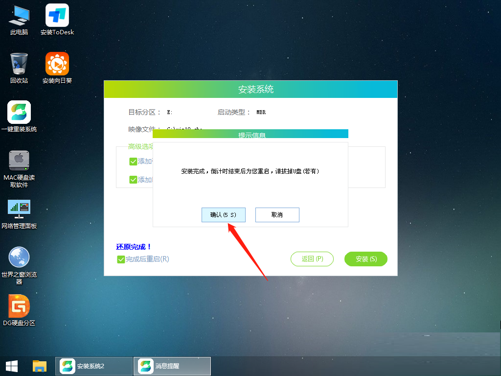 12、系統安裝完畢后,軟件會自動提示需要重啟,并且拔出U盤,請用戶拔出U盤再重啟電腦。
