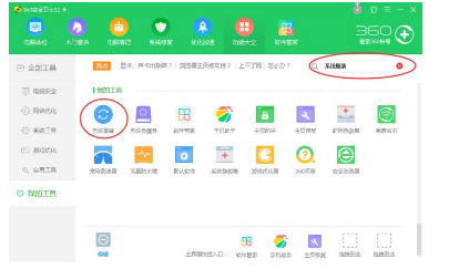 1、首先,進入界面后,雙擊打開360安全衛視,將界面切換到“功能”選項卡,然后找到“系統重新安裝”選項,然后雙擊以打開它。