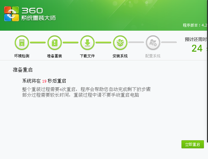6、單擊立即重啟后,我們只需要耐心等待系統安裝完成即可。