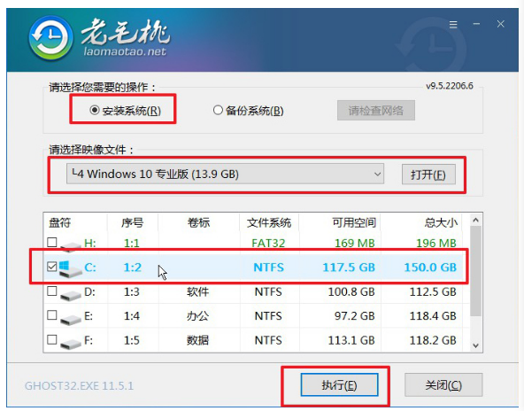 5、通過上面的操作,進入winpe系統桌面,打開裝機軟件,找到win10系統鏡像,安裝在c盤,點擊執行。