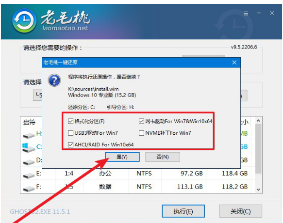 6、稍后彈出還原的窗口,通常保持默認設置,點擊是繼續操作。