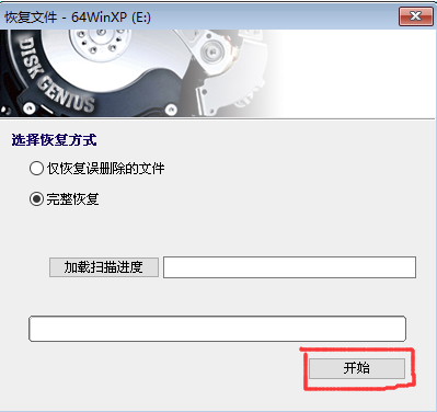 3、接著選擇“恢復整個分區的文件”,點擊“開始”按鈕。