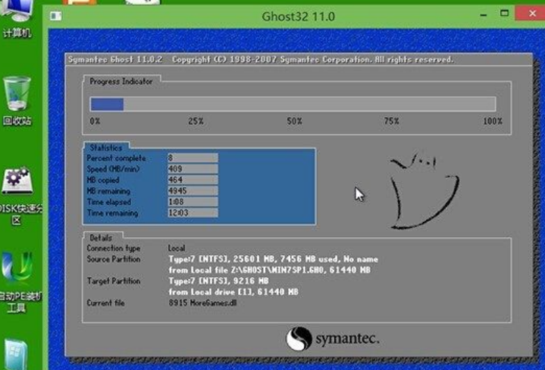 6、然后等待系統iso鏡像文件gho安裝程序釋放完成并自動重啟電腦即可,電腦重啟后等待系統后續程序安裝直到進入系統桌面即可。