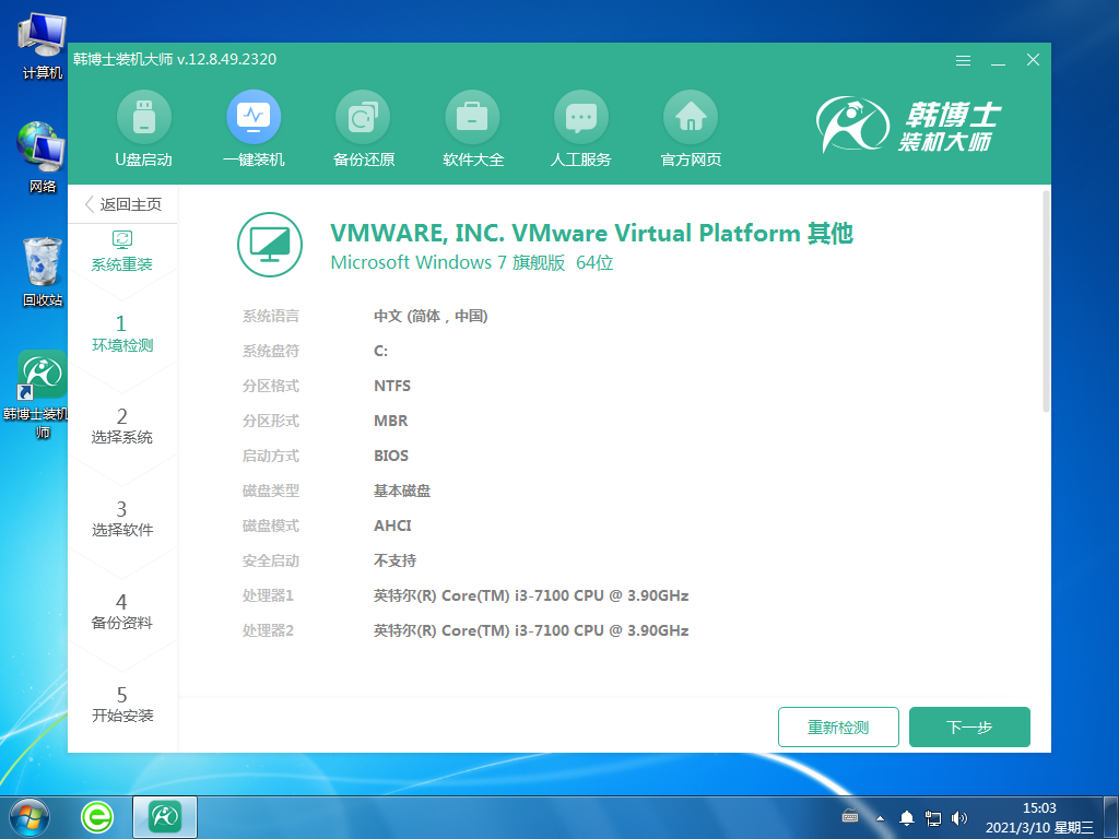 總結:以上就是惠普電腦系統重裝的步驟,可以使用韓博士一鍵裝機的U盤重裝以及在線重裝功能完成系統的安裝、