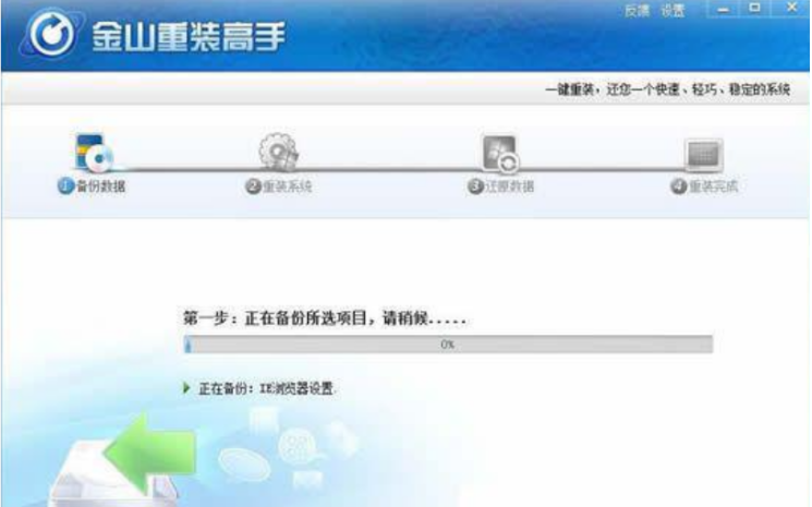 2、該工具將安裝系統步驟分為5步,分別是環境檢測、備份數據、重裝系統、還原數據、重裝完成,步驟極其簡單。重裝前需備份數據。