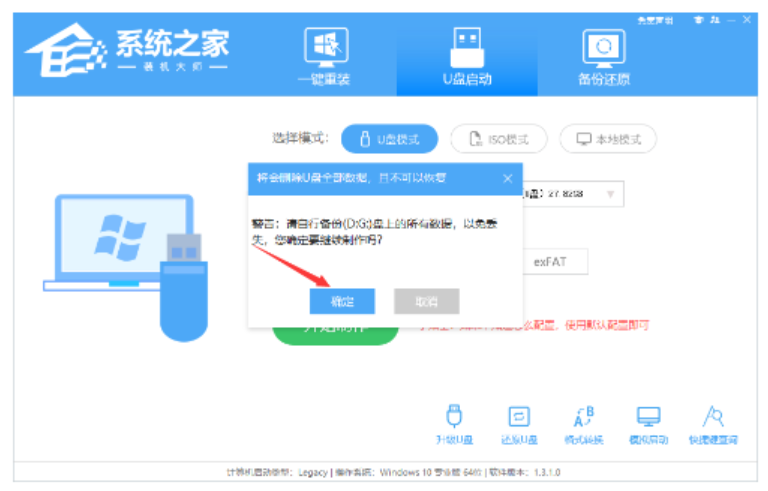 2、提前存儲U盤中重要數據文件,點擊確定,開始制作U盤啟動盤。
