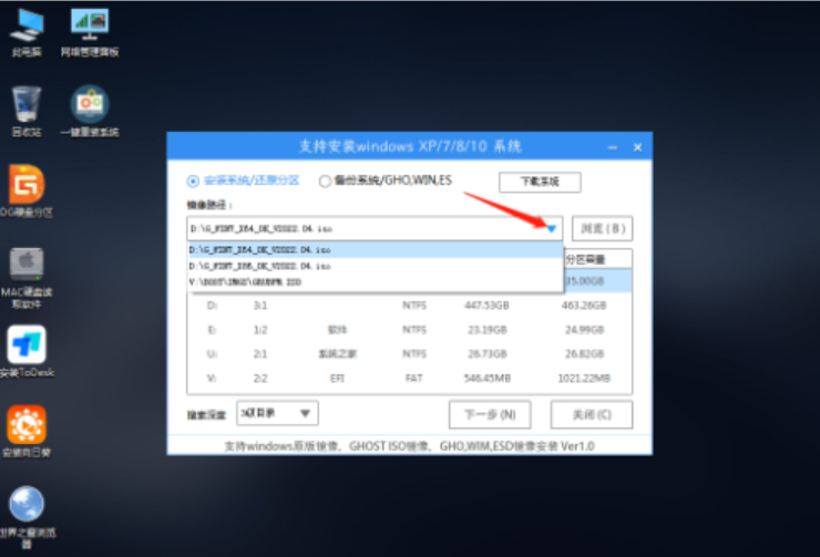 6、點擊桌面的一鍵重裝系統,點擊瀏覽選擇鏡像路徑,安裝在C盤,點擊下一步即可。
