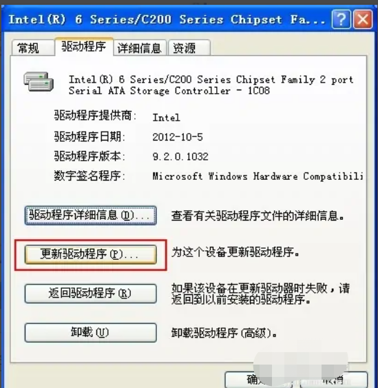 4、雙擊“主板芯片組”——在屬性面板中選擇“更新驅動程序”。