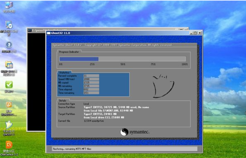 6、進入到這個界面,執行系統解壓到C盤操作,該過程5分鐘左右。