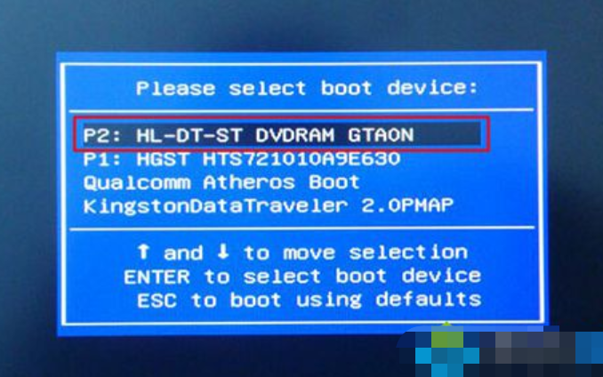 1、在asus筆記本光驅上放入系統光盤,重啟時按Esc啟動熱鍵,在彈出的啟動菜單中選擇DVD選項,回車。