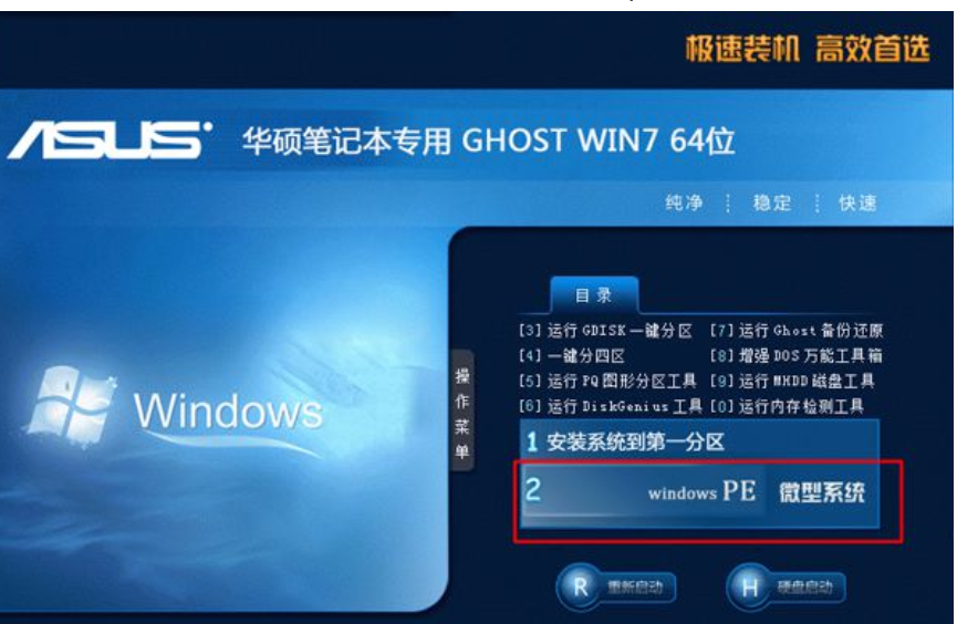 2、進入光盤主菜單,按數字2或點擊選項2運行windows pe微型系統。