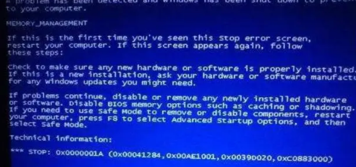 2.藍屏代碼:0x0000001A,可能是內存條問題,可以嘗試重新插拔內存條,用橡皮清理內存金手指部分,清理灰塵?;驀L試更換內存條,重啟。