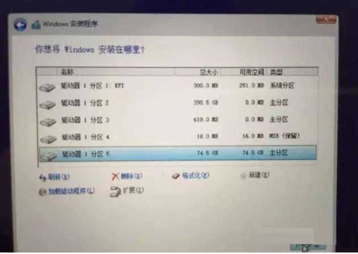 7、選擇剛剛分了80G的那個區,點格式化,然后清除數據后就可以繼續安裝了。
