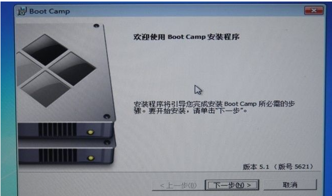 4、插入Windows 安裝U盤或者光盤,再次啟動Boot Camp助理,選擇安裝Windows 7 或更高版本。