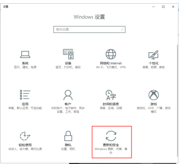 1、按快捷鍵Win+I打開設置界面,選擇更新和安全進入。