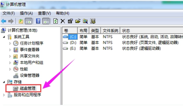 2、彈出的窗口中,選擇“磁盤管理”。
