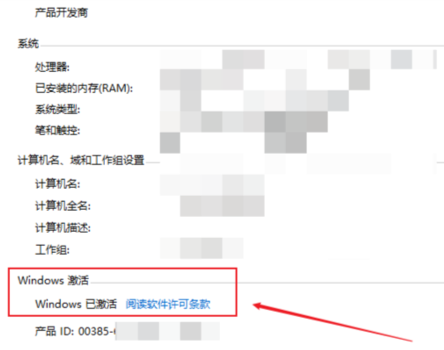 6、然后在win10專業版系統的屬性界面底部,我們可以看到win10專業版已經成功激活。