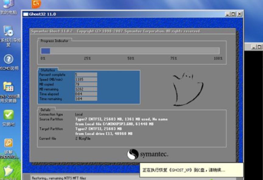 7、完成后重啟電腦,然后取出xp光盤,后面會自動執行xp重裝過程。