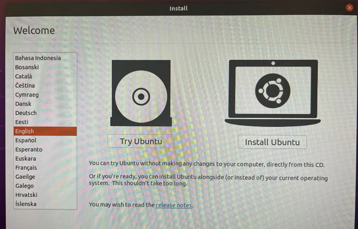 3. 重新啟動選擇ububtu進入安裝界面