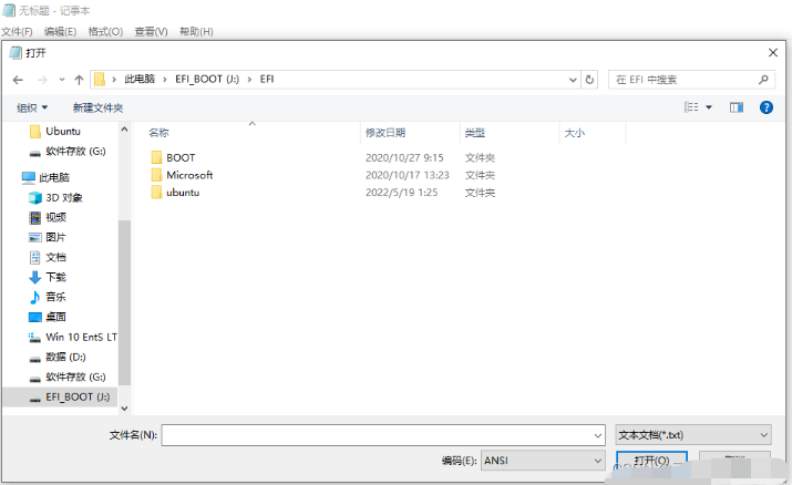 ⑤管理員模式打開記事本,記事本選擇文件-打開-選中磁盤J